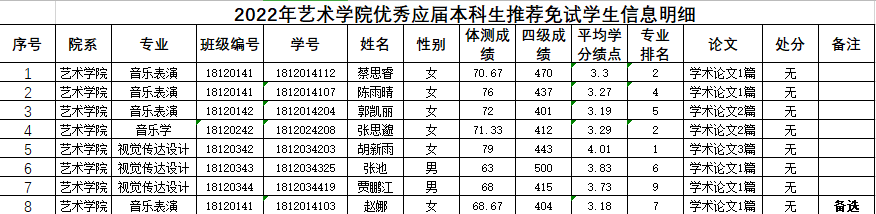 根据《中北大学推荐优秀应届本科毕业生免试攻读硕士研究生实施办法(修订)》(校教[2020]17号)、《关于做好2022年推荐优秀应届本科毕业生免试攻读硕士研究生工作的通知》(学籍[2021]25号)、《重庆时时彩平台推荐 推荐优秀应届本科毕业生免试攻读硕士研究生实施细则》(试行),经个人申请、材料审查、专家审核小组评议结果公示如下。如有异议,可自公示之日起至9月21日前以书面形式向教学科反映,联系电话0351-3924708。