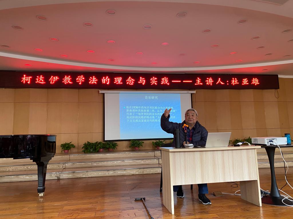 特邀中国音乐学院博士生导师、民族音乐学家杜亚雄教授举办《柯达伊教学法的理念与实践》的学术讲座,并开展了音乐教学设计的交流。