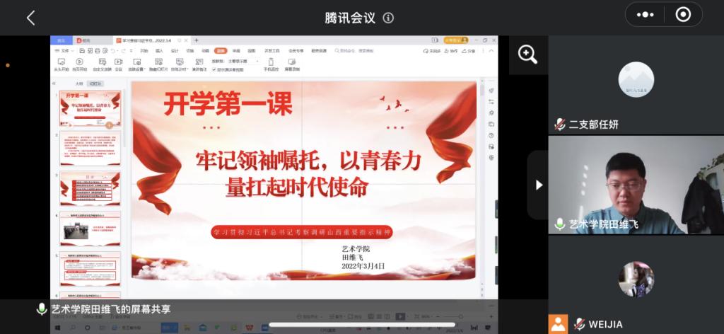 举行了线上“开学第一课”。学院党委副书记田维飞以《牢记领袖嘱托,以青春力量扛起时代使命》为主题,为学院全体学生党员、团委学生会干部、班干部做了一场别具特色的专题讲座,深入学习贯彻习近平总书记考察调研山西重要指示精神。