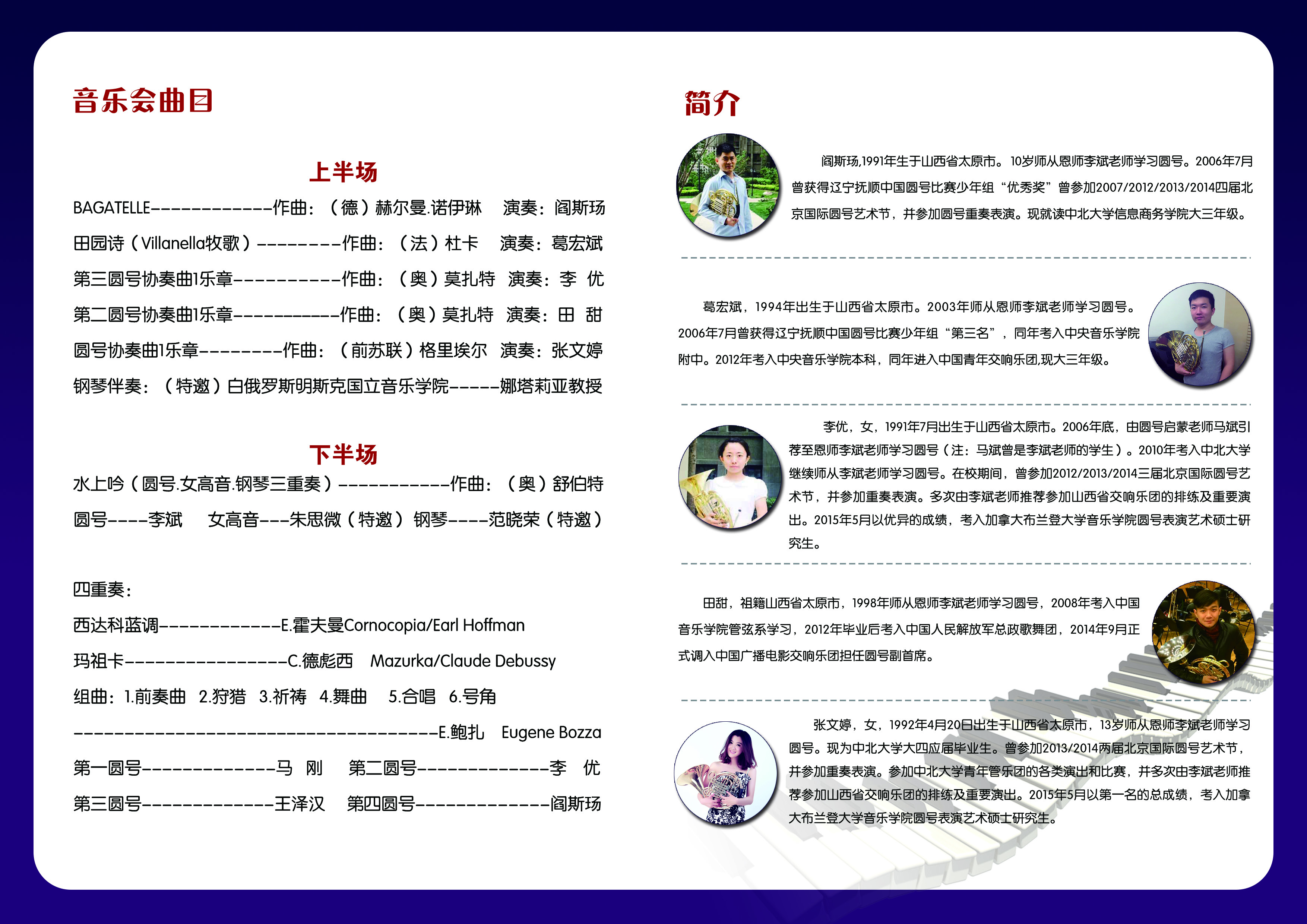 学科管理部主任、圆号演奏家李斌老师与近年培养的七名弟子,一起在西教学音乐厅举行了一场别开生面的且属山西省管乐界高水平的师生圆号音乐会。