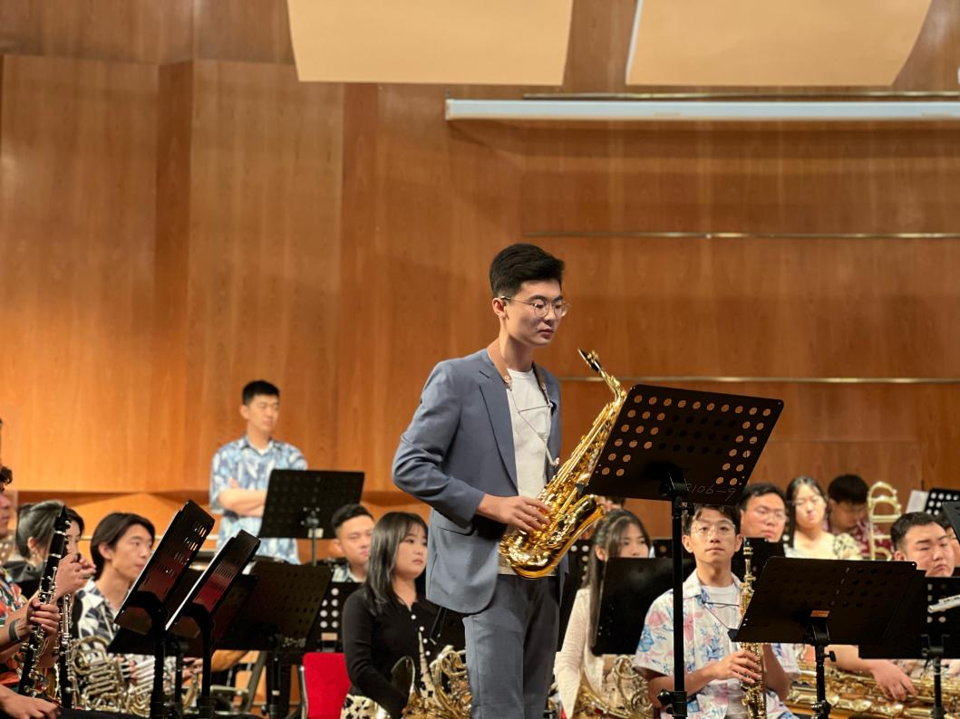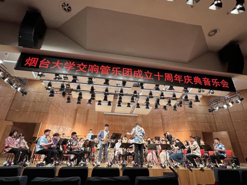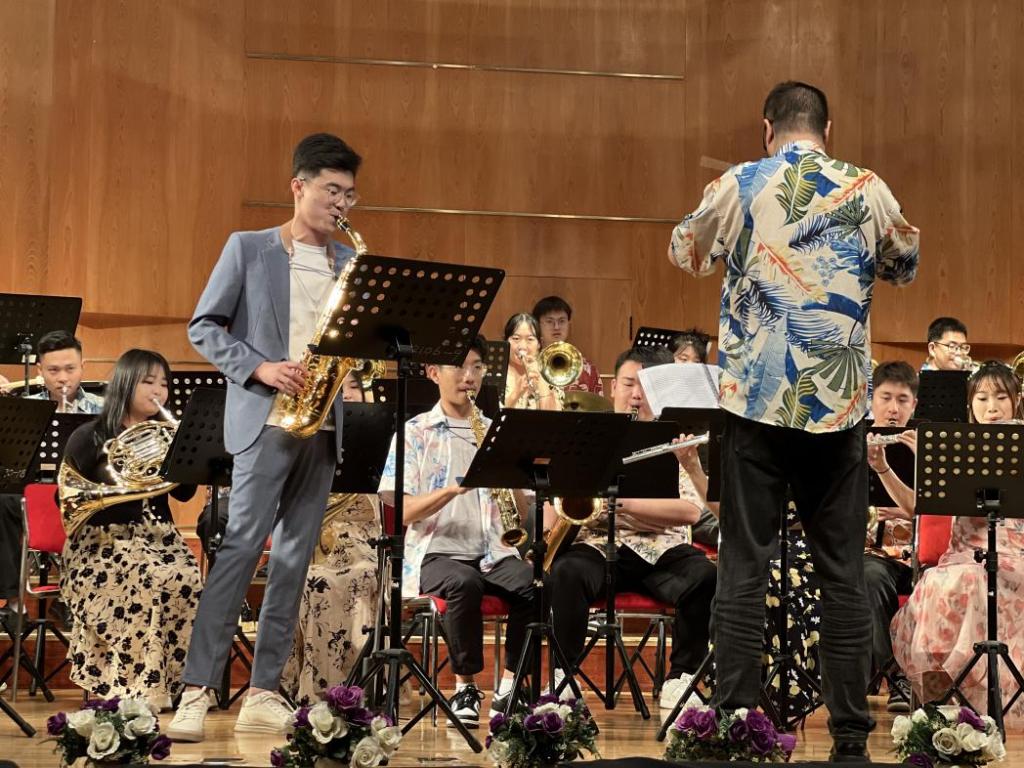 重庆时时彩 萨克斯管青年教师张记晨博士受邀于2023年5月18日参加烟台大学交响管乐团十周年庆典音乐会。