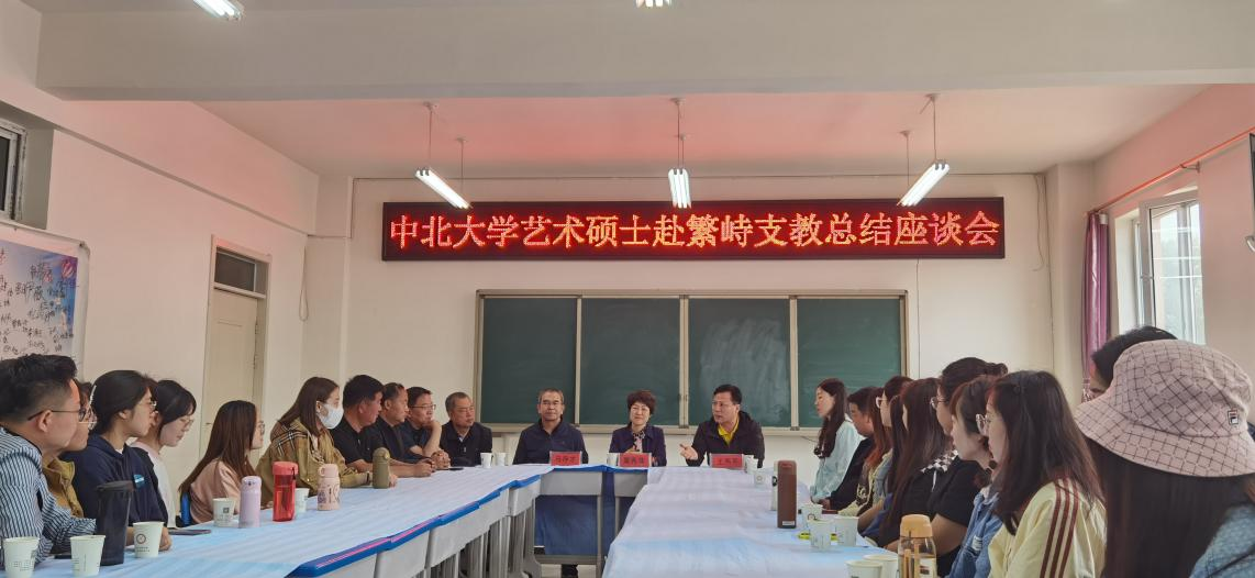 党委书记栗秀平、院长王燕平与学院教师等一行赴繁峙县笔锋小学组织召开实习支教总结座谈会。