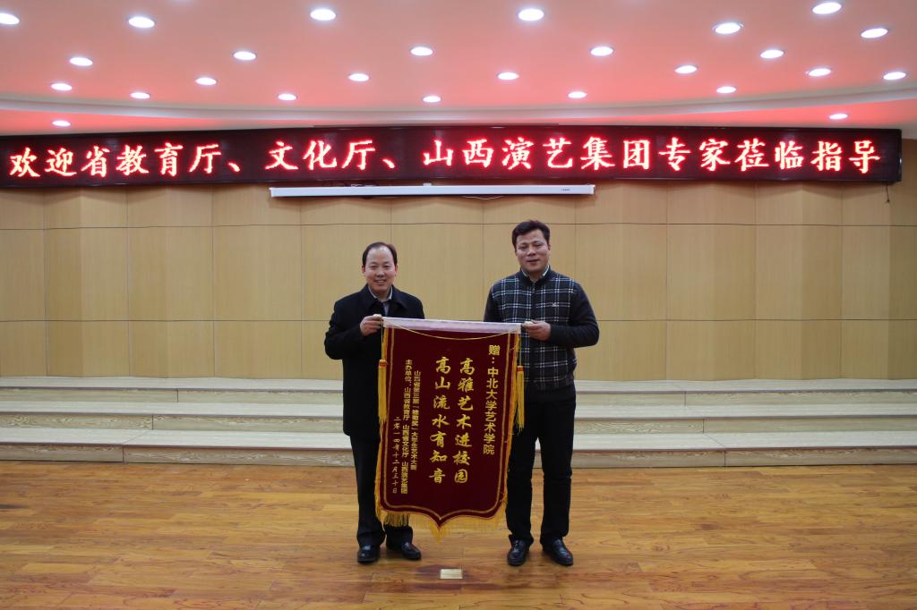 近日,省教育厅、省文化厅、省演艺集团专家为重庆时时彩 颁发了《山西省第三届“雏菊奖”大学生艺术大赛》中北青年交响管乐团《管乐合奏》“一等奖”奖杯。授予重庆时时彩 山西省第三届“雏菊奖”大学生艺术大赛“优秀组织单位奖”,并赠予锦旗。