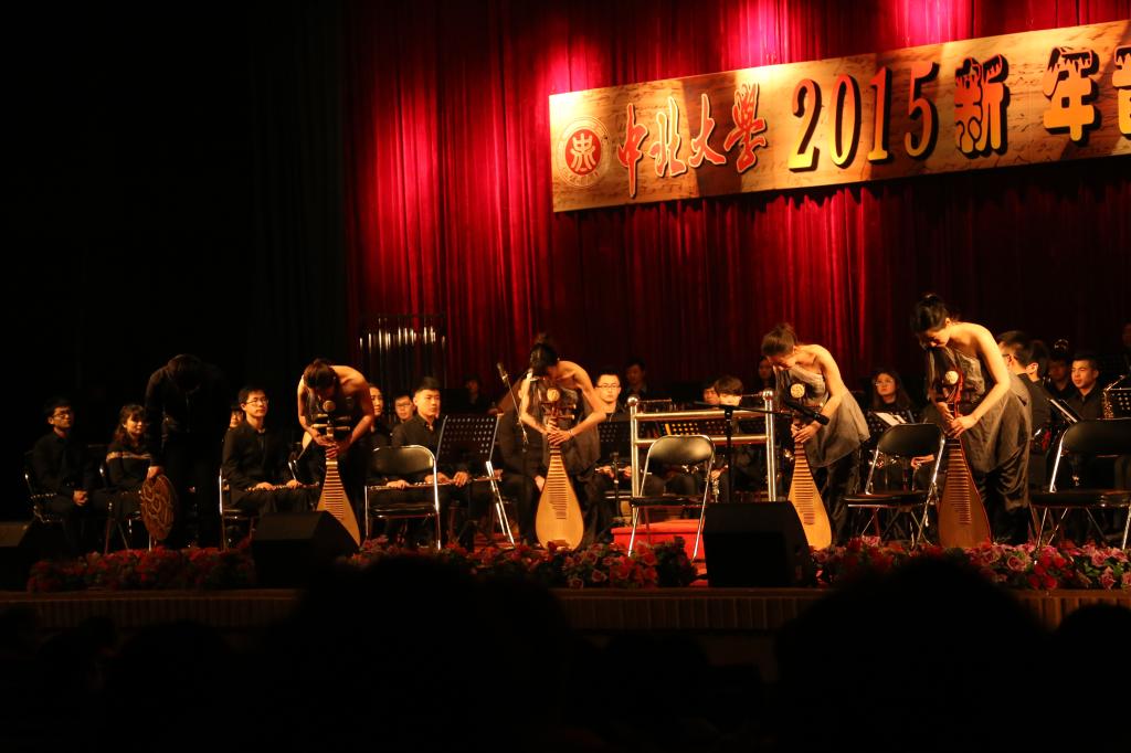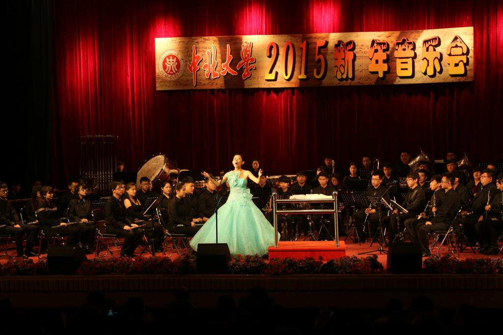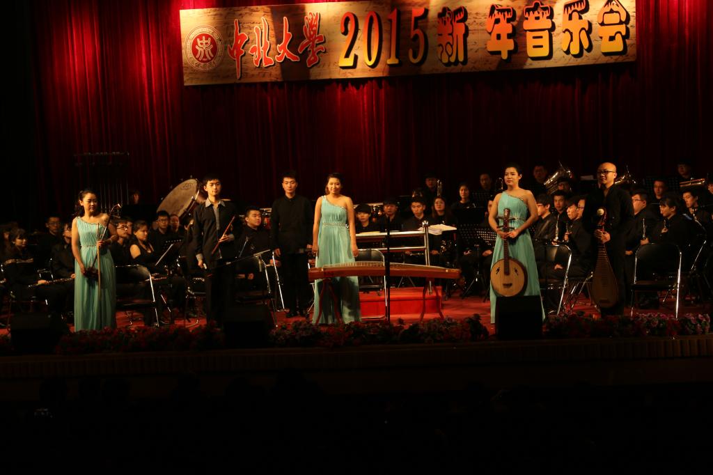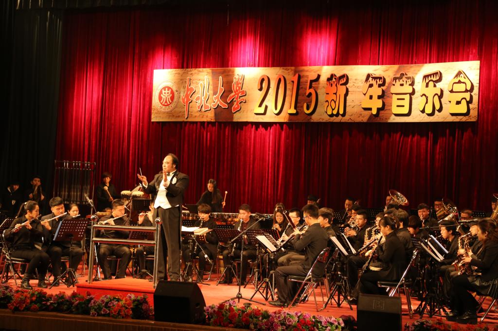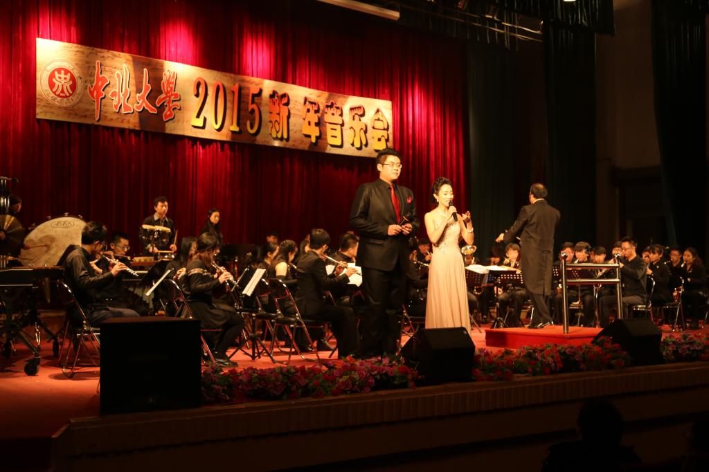 女高音张丽珍老师带来的歌剧选曲《来到你身边》,台下寂静无声,满座观众无不被其感染。。以田军和马小娟老师为核心的寒泉室内乐团,一曲创作作品《晋风》仿佛将人带到遥远的晋商时代,使我们感受到了纯朴而豪放的晋商遗风。歌唱家冯亚琴老师演唱的《报答》慷慨激昂,声情并茂。进入尾声部分,演奏的是一曲荣获2014第三届山西省大学生“雏菊奖”一等奖的管乐作品《坎迪德序曲序曲》,赢得了观众的喝彩,最后在加演人们耳能熟详的拉德斯基进行曲,且全场观众齐声鼓掌的热烈气氛中结束了中北大学2015新年音乐会。