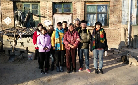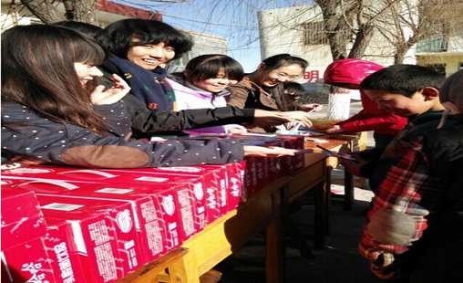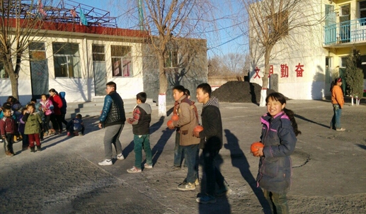 中午1:30同学们踏上了行程,一路上历经了从栋栋高楼与繁华街市到土墙平房与安静村落的转换,心情充满了激动与感慨。之后全体同学到达了杨家井小学,映入眼帘的是一眼就望到边的校园和仅有的一栋二层小楼,与当地老师进行注意事项确认后,立即开展了活动。首先,孩子们在院内排好队后分别分发了铅笔本子等学习用品和哇哈哈饮品,然后,同学们分为三组,一组在教室交孩子们画画,一组在院内与孩子们进行体育活动,一组到村里看望年迈的老人。每位同学都在用自己的全力帮助与感染着杨家井村,发扬青春正能量,奋力实现中国梦。