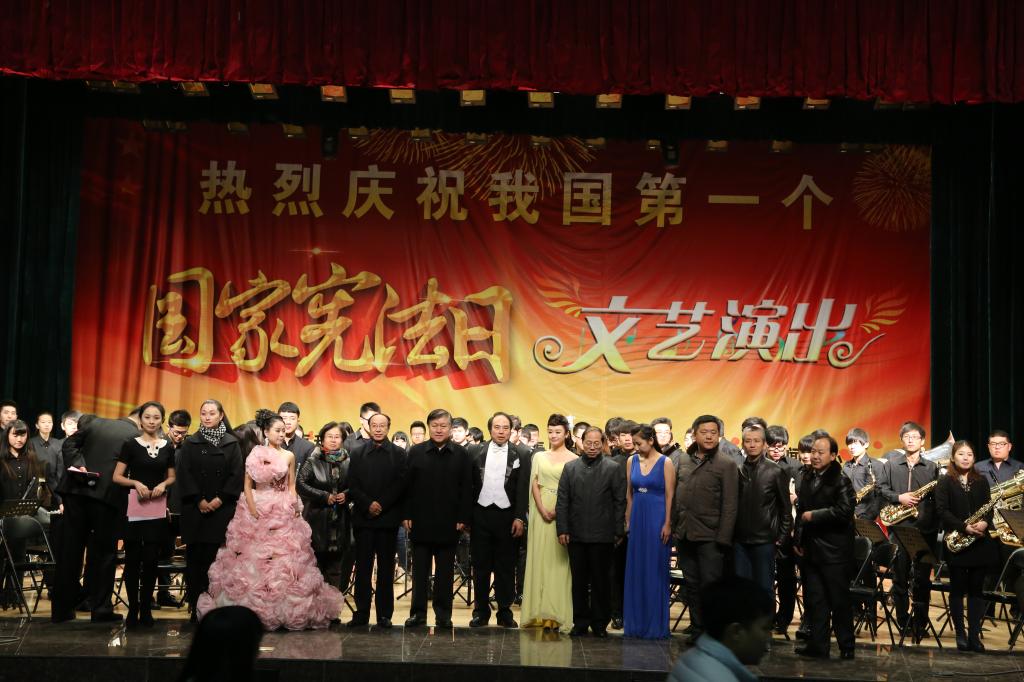 演出完毕,太原科技大学校党委书记杨波教授一行领导,上台于全体演职同学合影留念。杨波书记兴致勃勃的说:我是中北的老校友,与中北大学有着不解之缘,感情深厚。中北大学发展之快令人刮目相看,中北重庆时时彩