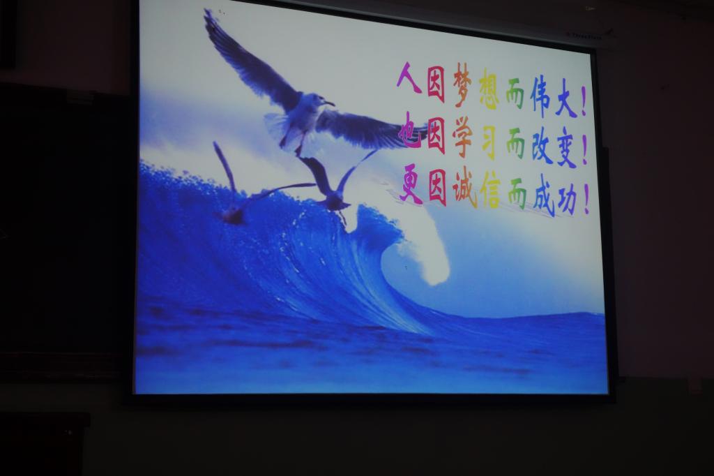 同时曹书记还举出了大量现在大学生不诚信的事例,来督促在场大学生讲诚信、守时间。结尾时,曹书记总结了此次班会的主题,同时送给了在场同学四句话——人因梦想而伟大!也因学习而改变!更因诚信而成功。