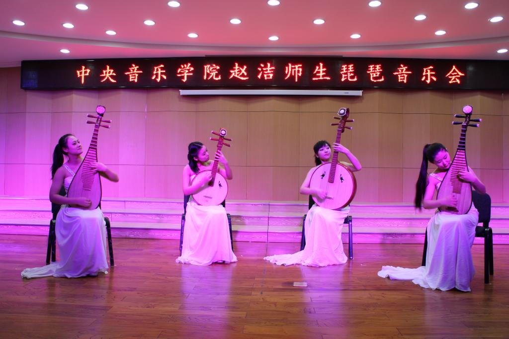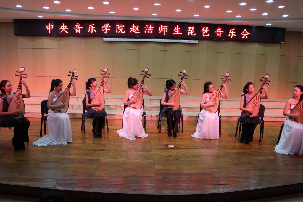 音乐会上,赵洁师生为观众献上了《月光变奏曲》《梦如江南》《平沙落雁》《诉》《霸王卸甲》《山之舞》等乐曲,质朴大气,风格宽泛,细腻流畅的演奏征服了全场观众。最后由中央音乐学院和中北大学两校的琵琶学生联袂为大家献上了琵琶重奏《送我一只玫瑰花》,将音乐会推向了高潮。