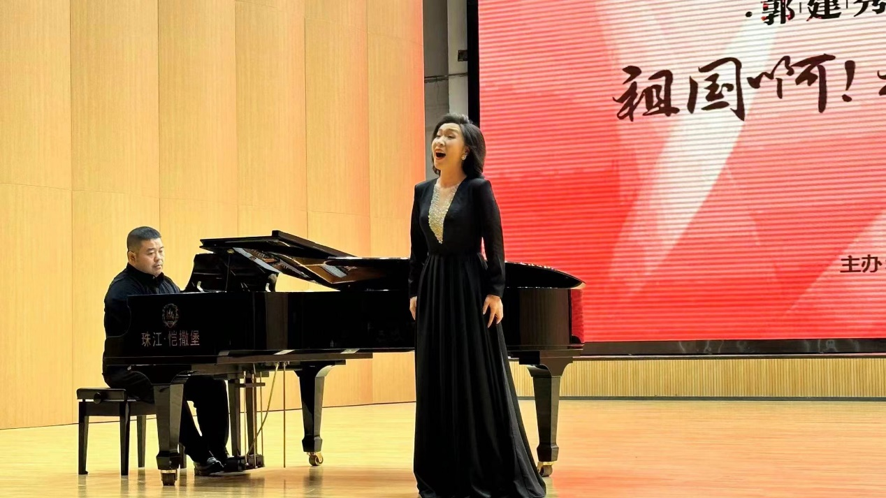 一首《听一会音乐》[英]拉开了音乐会的序幕,随后郭建秀老师分别演唱了《党啊,亲爱的妈妈》《乡愁》《天之大》《师恩如歌》《佳节思亲》《钗头凤·红酥手》《献词[德]》《残香[韩]》《祖国啊,我永远热爱你》等不同风格的声乐作品。