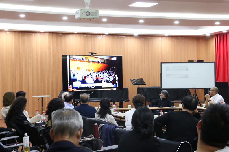 院长王燕平教授主持示范讲座。由樊瑛带领的太原市职工青年合唱团、付庆元带领的音雄联盟合唱团演出不同版本的《中华》以供讨论。三位专家围绕作品的词曲创作、表现手法及其鲜明特点进行发言。中国戏曲音乐学会会长,国家一级作曲,中国戏曲学院音乐系主任、教授,《中华》曲作者谢振强分享了创作心得,提出合唱改编的有效建议。中国当代著名职业作曲、指挥家,国际一流乐团及国家级院团特邀委约作曲家甘霖从创作、创新的角度切入,指出《中华》这部作品的妙处所在。中国合唱协会副理事长,浙江音乐学院院长、二级教授严圣明表示山西要不断推出原创作品,打响本地文化品牌。