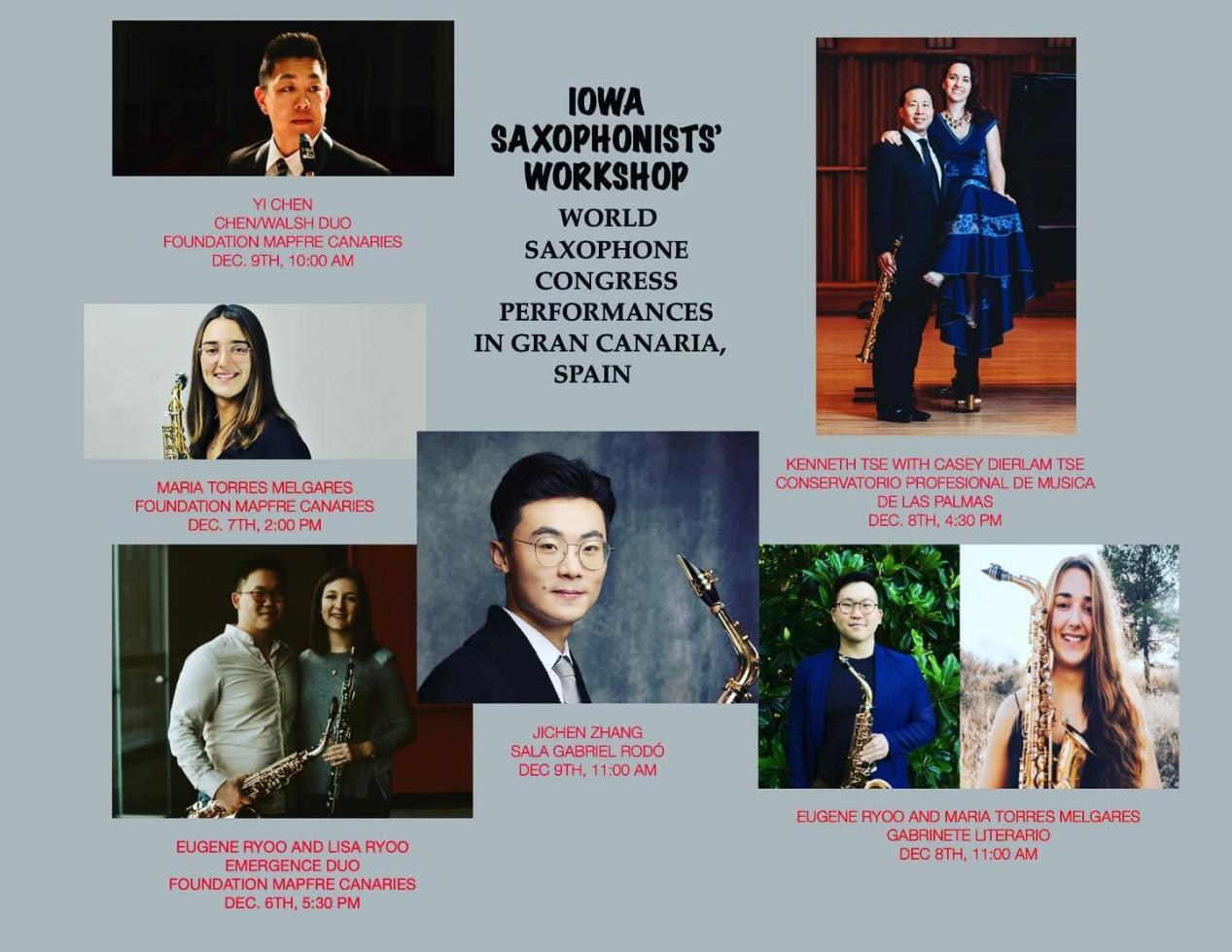第十九届世界萨克斯大会于2023年12月在西班牙大加纳利岛圆满落幕。此次大会包括独奏、室内乐、管乐团、交响乐团的合作表演,探讨会、讲座、大师班等多个环节,还有年轻音乐家与当代作曲家新作品的首演,以及乐器制造商、配件生产商、乐谱与其他出版物发行商的线下活动。