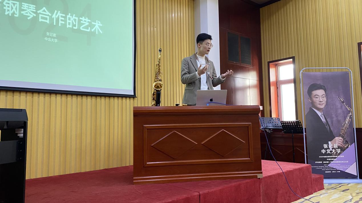 张记晨博士代表中北大学积极踏上了多个重要舞台,成为了整个会议的焦点之一。他不仅在两场世界级音乐会上展示了高超的演奏技巧,同时还举办专家讲座、主持专业课程等活动,分享了在音乐领域的独到见解,传授了宝贵的音乐经验和技艺,为年轻音乐爱好者提供了难得的学习机会。
