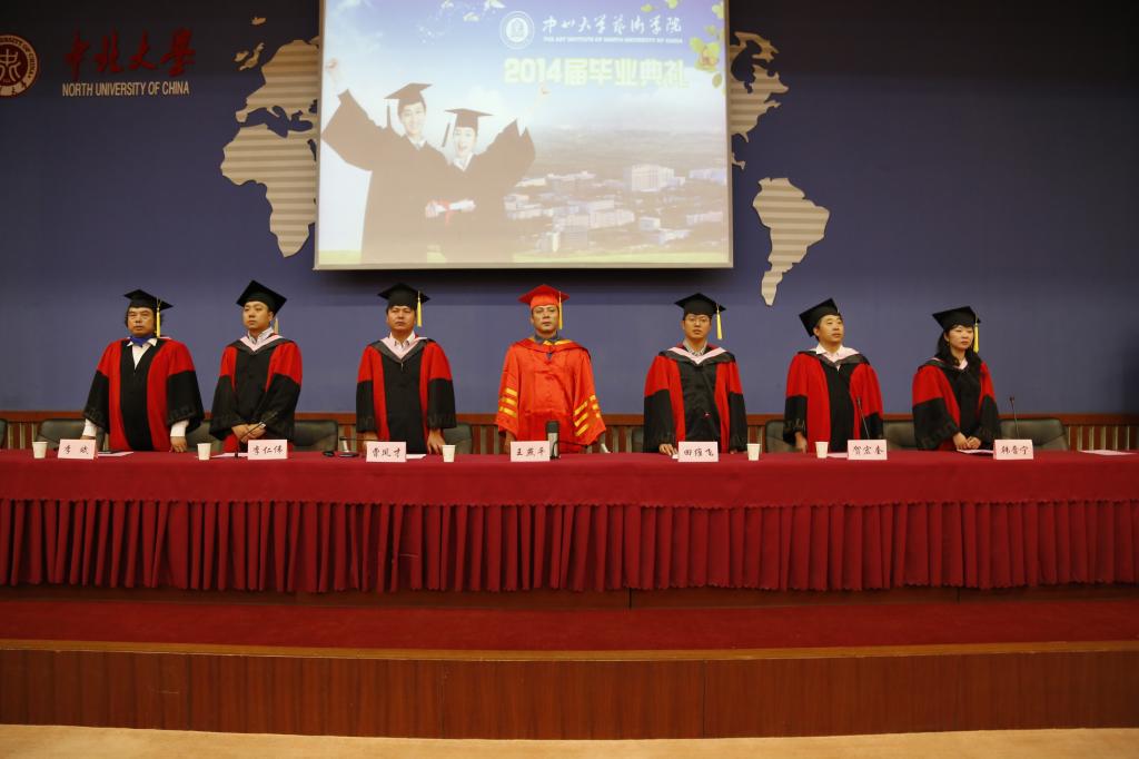 2014届本科生毕业典礼在图书馆学术报告厅隆重举行。上午9:00,毕业典礼在雄壮的国歌声中拉开帷幕。首先刘镜萍同学代表广大毕业生在发言中,饱含深情地表达了对学校、老师、父母辛勤哺育的感激,表示将牢记母校重托,诚实做人,用心做事,投身社会,奉献青春,用优异的成绩报答母校的栽培之恩。接着毕业生张科同学带领全体大四毕业生宣誓,表示要在踏入社会中努力工作,为社会做出贡献,并且不忘母校的栽培,在不久的将来回报社会,回报母校。其次在校生代表郎琳琳同学在发言中,代表广大在校生向圆满完成学业的学长们表示祝贺,感谢学长们在校期间对自己的帮助,表示将以他们为榜样,勤奋学习、诚实做人,掌握好知识,以便将来报效祖国。