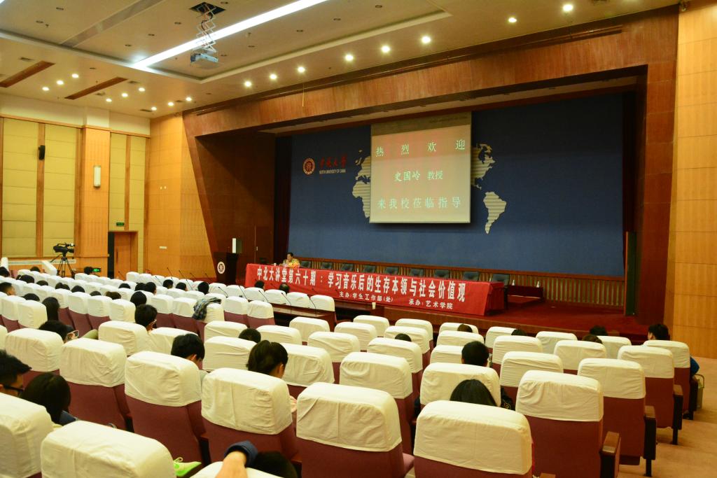 党总支副书记田维飞主持。音乐专业全体师生积极前来参加本次报告会,在报告开始前由学科部部主任李斌老师为史国岭教授颁发了“中北大学客座教授”聘书。