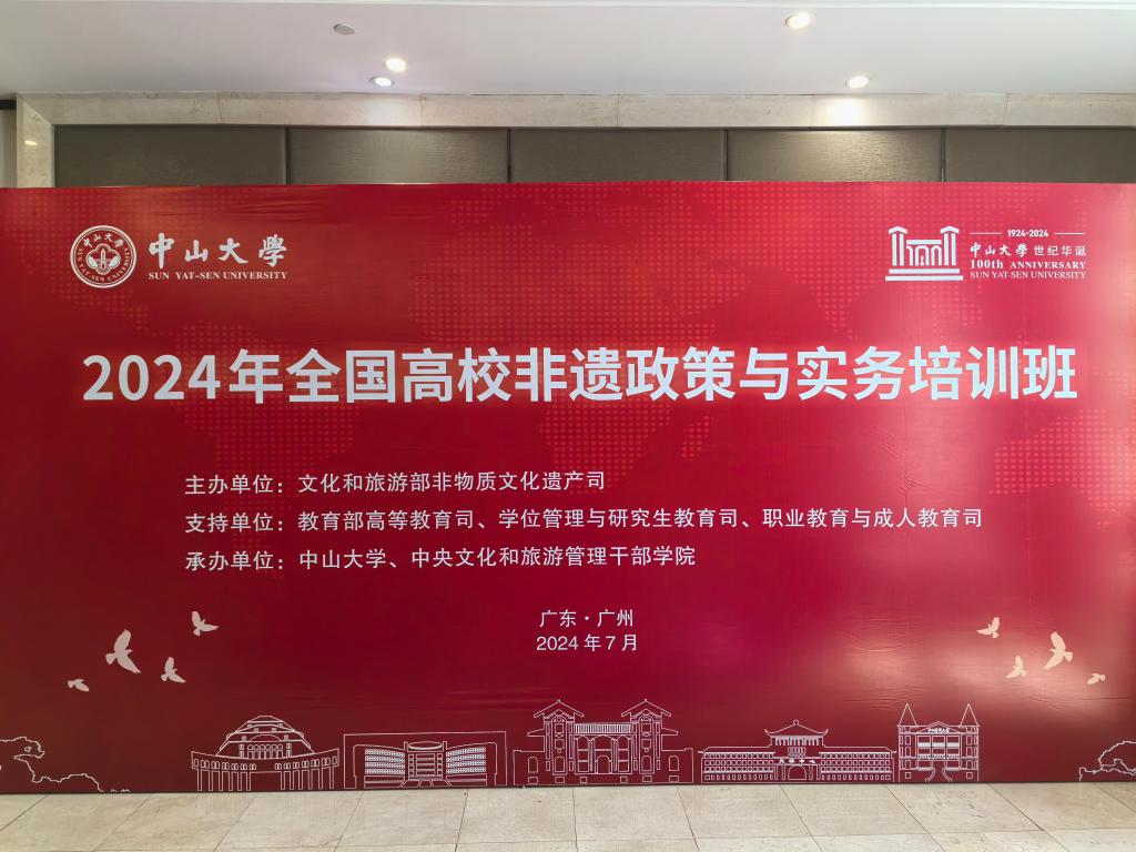 教师赴中山大学参加“2024年高校非遗政策与实务培训班”学术研讨会,为进一步提升高校非遗人才培养的质量和学科建设成效,该会议由文化和旅游部非物质文化遗产司主办,中山大学、中央文化和旅游管理干部学院承办,教育部高等教育司、学位管理与研究生教育司、职业教育与成人教育司提供了全方位的支持。
