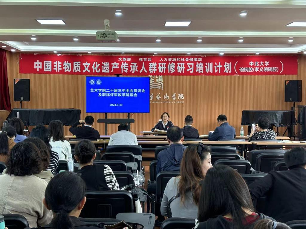 在鸿学楼二楼东厅召开了二十届三中全会宣讲会及职称评审改革解读会。会议由院长王燕平教授主持,学院领导班子成员、各科室主任、各系主任及全体教职工参加了此次会议。