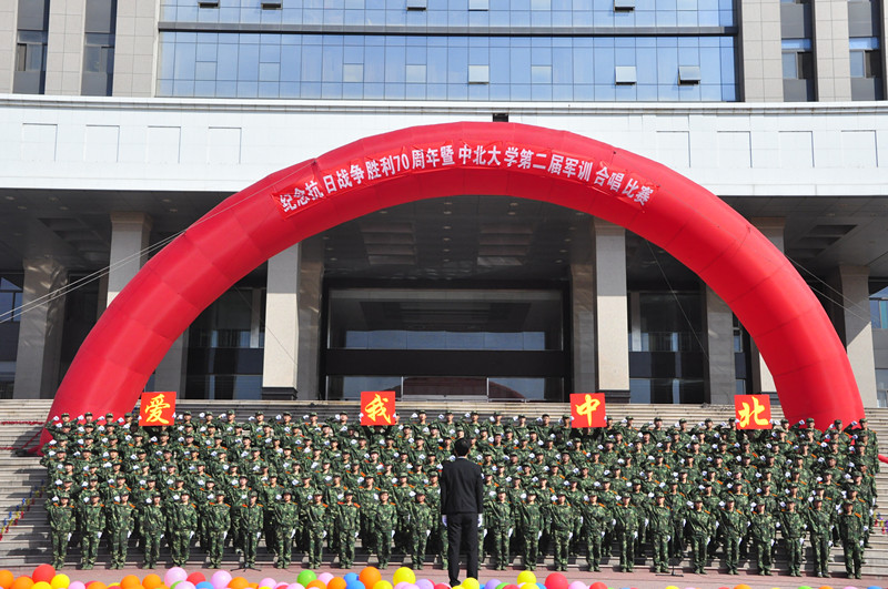 共同举办的纪念抗日战争胜利70周年暨中北大学第二届军训合唱比赛在行知广场举行。军训团成员担任评委。各营合唱代表队参加比赛歌唱中北、歌唱祖国。
