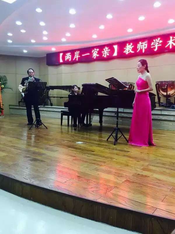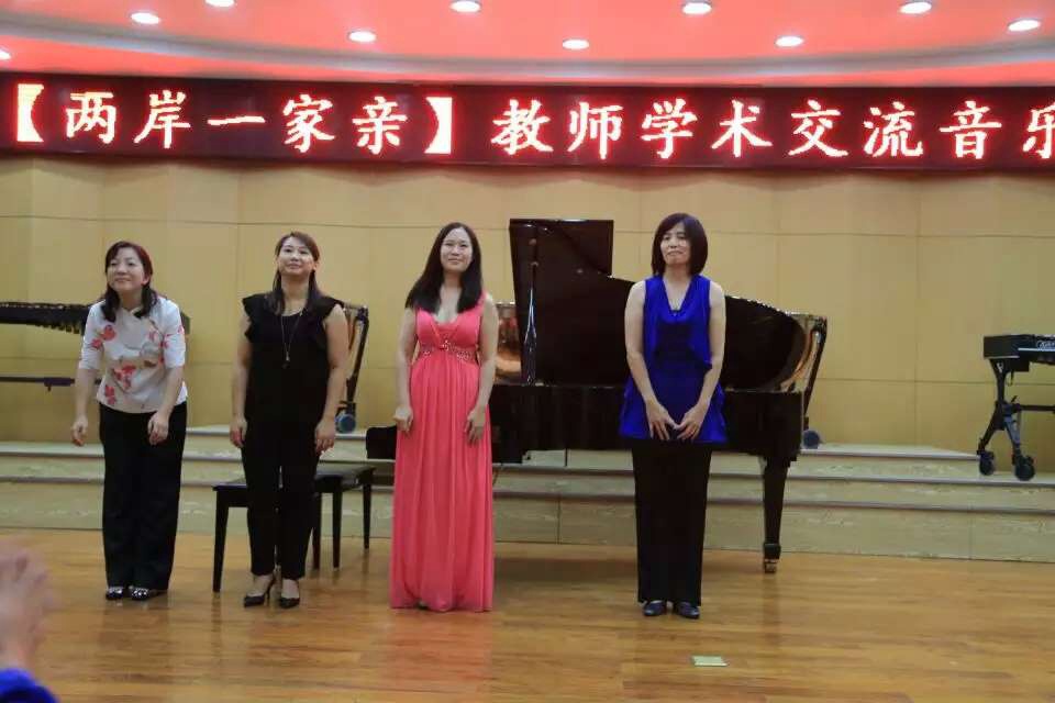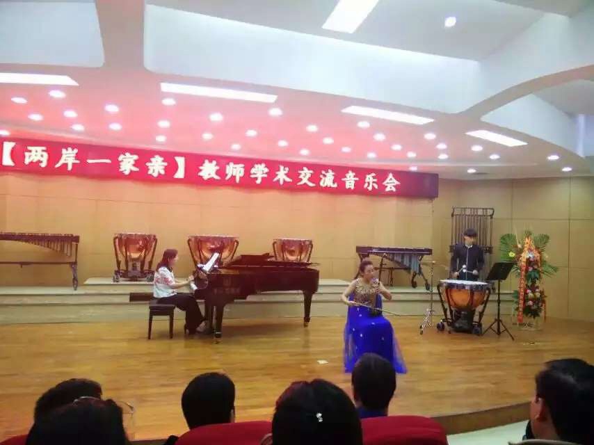 西教学音乐厅举行了“两岸一家亲”教师学术交流音乐会。音乐会形式和作品风格多样。钢琴四手连弹演奏;钢琴,圆号与声乐演唱;钢琴演奏与琵琶,二胡以及最后的钢琴八手联弹,获得了现场观众一致好评。