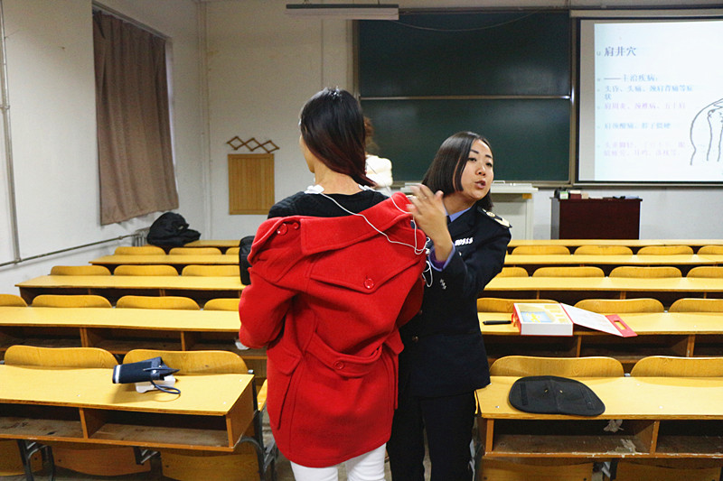 高老师以大量的数据和图片,多角度、多层面、理论联系实际地围绕现场紧急救护知识(人工呼吸,胸外按压)、雾霾(pm2.5)的危害及预防、经络穴位养生、办公室职业疾病的预防、职场人员心理健康、粉尘、噪音及机械性损伤引起的危害等方面进行了讲解。
