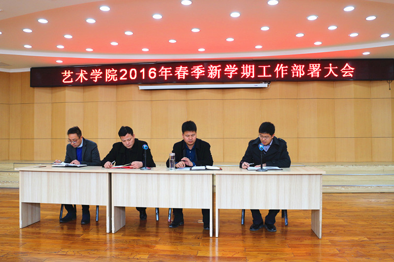会上,王燕平院长传达了校党委书记李忠人和校长刘有智在2016年新学期正处级干部会议上的讲话精神,回顾了2015年的工作重点和取得的成就,对新学期的总体工作进行了全面部署,提出新制度建设的必要性和重要性,并对教学管理、科研工作、人才队伍建设、学科评估、本科生教育、研究生教育工作、对外展演和对外学术交流合作等方面的工作进行了安排。李仁伟副院长总结了上学期的教学工作,对新学期的教学工作做了计划和安排,强调要改进教学质量,做好教研教改工作。田维飞副书记对分管的学生工作做了详细的安排部署。