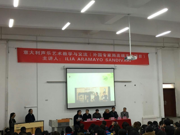 交流活动公开课主讲人是国际声乐大赛评委、世界著名女中音歌唱家、意大利帕尔玛音乐学院声乐教授ILIA ARAMAYO SANDIVARI。