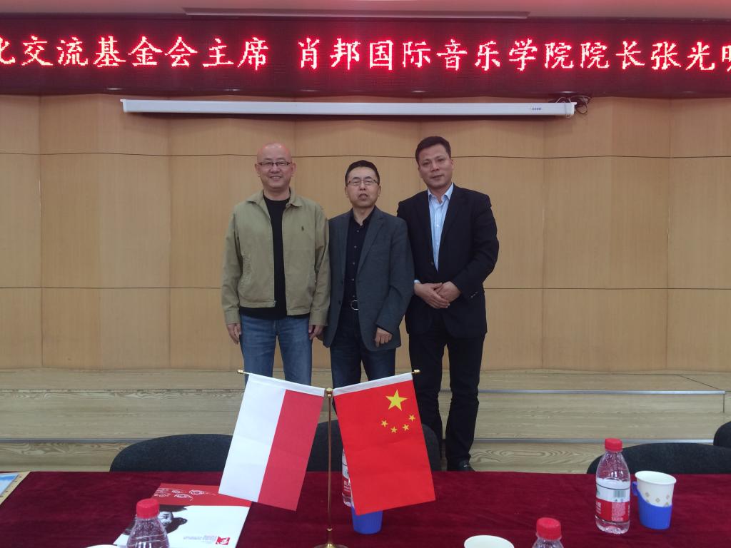 4月13日上午,波兰肖邦文化交流基金会主席、肖邦国际音乐学院院长、罗兹音乐学院代表张光明教授重庆时时彩 访问。国际交流合作处张宗胜处长、重庆时时彩 院长王燕平在重庆时时彩 东排练厅会见并举行会谈。双方就本科、硕士、博士的学历合作及中国民族音乐与波兰音乐的课题研究初步达成意见,并探讨构建中波音乐艺术研究所,增加学生交流,积极推动教师交流互访等科研合作意向。