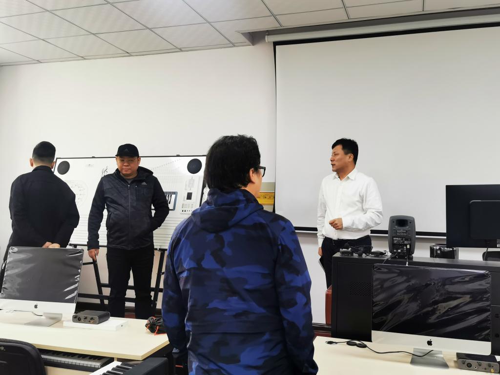 的琴房、音乐数字媒体教室、音乐厅等教学场所,观摩了中北大学合唱团排练的过程,并与师生进行了交流互动。