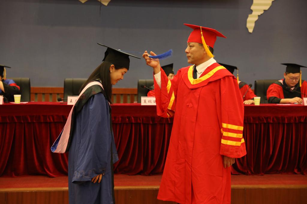授证行礼、拨穗正冠将整个毕业典礼推向高潮。王院长为2021届全体毕业生一一拨穗,授予学位。
