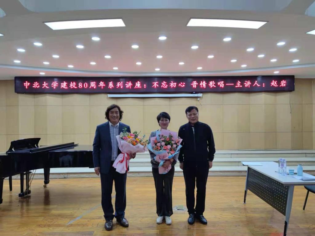 东音乐厅举办了庆祝中北大学建校八十周年系列学术讲座《不忘初心晋情歌唱》,由低男中音歌唱家赵岩先生主讲。