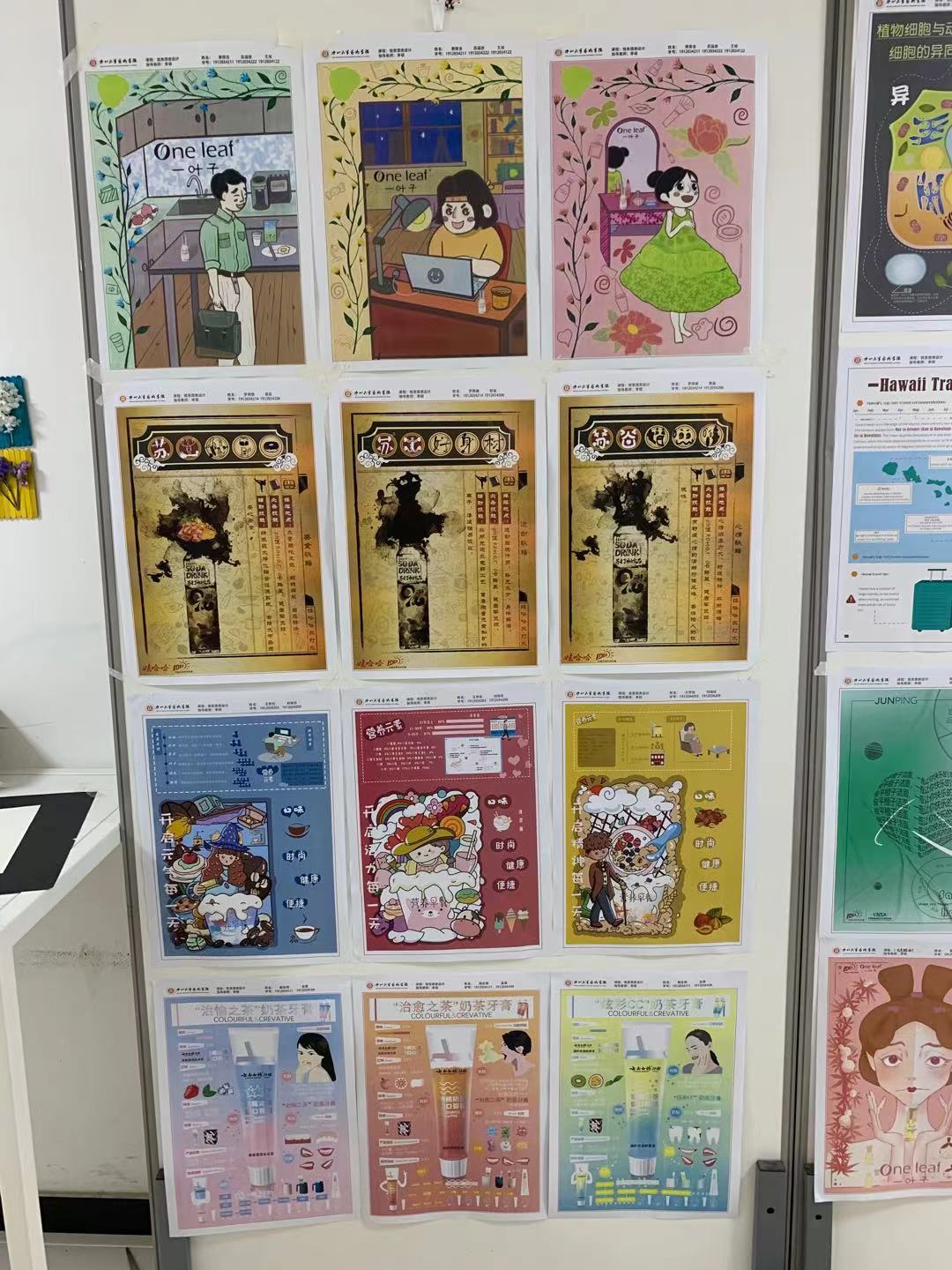 学生作品以多个主题如爱华仕箱包、一叶子熬夜精华、俊平洗面奶以及哇哈哈和云南白药牙膏等为主题进行分析制作,各小组结合各自的研究方向进行视觉设计实践,分别涉及到主题海报插图设计、数据分析、市场调研、版式设计,策划案等。本次课程作业展以考核学生课程学习质量为目的,作为设计专业的学生,在展示设计作品的同时,也锻炼了展陈实践能力,提升了设计的审美能力,充分展示了同学们的艺术创造性,促进校园文明建设,引导大学生的健康成长起到了积极和推广作用。