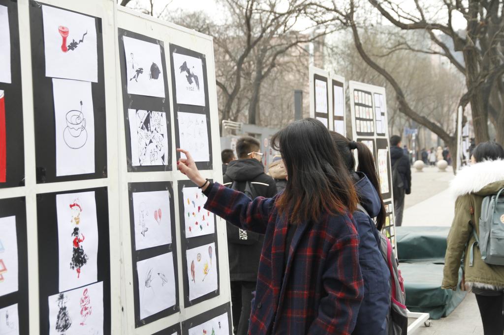 15120341、15120342班同学于中北大学中央大道开展了《图形创意》结课作品展,引来各院师生驻足观展。在本次结课作品展中,同学们通过对元素的创新性探索与尝试,结合自己的联想在图案的结构形式上进行创新,创作出内容形式多样,表现效果突出的作品。