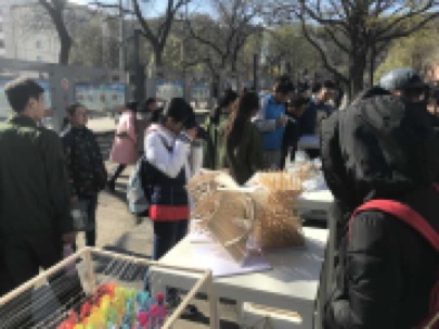 16120541班、16120542班学生的《立体构成》结课作品在中央大道展出。专业代课教师温非老师以及541、542班全体师生参加了此次展览。