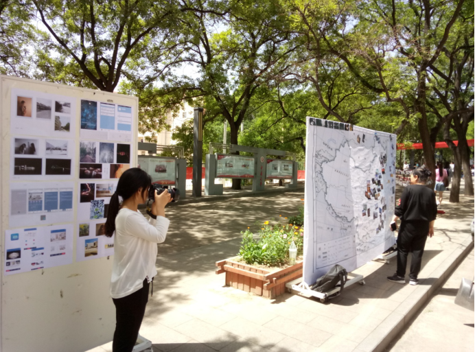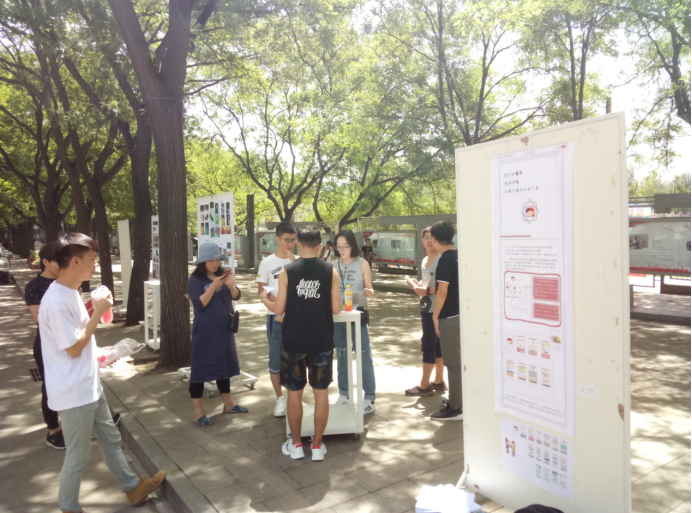 2015级产品设计专业的学生在12号楼门前的中央大道上举办了《界面设计》课程作品展览,学校师生纷纷踊跃到现场观展。