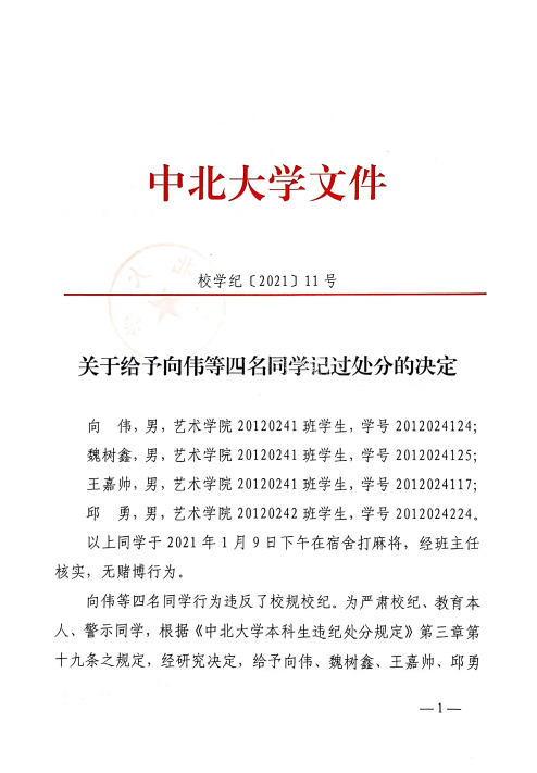 重庆时时彩 处分2021[11]号处分(违规违纪)